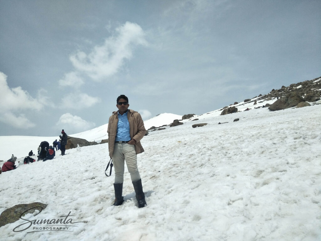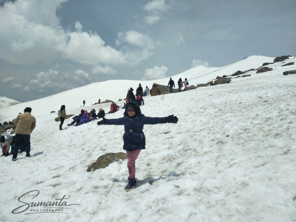 We spent time simply walking around, taking in the panoramic Himalayan views. The sky felt impossibly wide and clear, and the silence of the mountains carried a peaceful intensity. Local guides offered sled rides and photography spots, and we paused often to capture family pictures against the dramatic snowy backdrop.