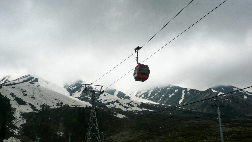 When we finally reached Gulmarg, the view was breathtaking. Endless stretches of green grass rolled gently toward snow-capped mountains, creating a striking contrast of colors. The famous Gulmarg Gondola ride was the highlight of our visit. As we boarded the cable car and began ascending, the scenery unfolded beneath us like a living postcard. Pine trees shrank into miniature shapes, and patches of snow appeared more frequently as we gained altitude.